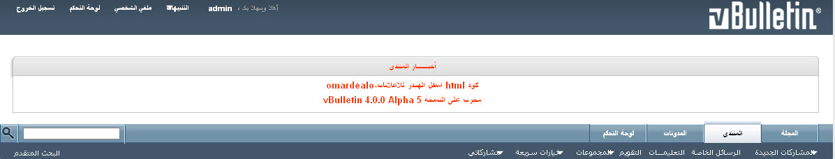 (كود html اسفل الهيدر للاعلانات-omardealo الاصدار الاول 1.0) مجرب على النسخة vBulletin 4.0.0 Alpha 5