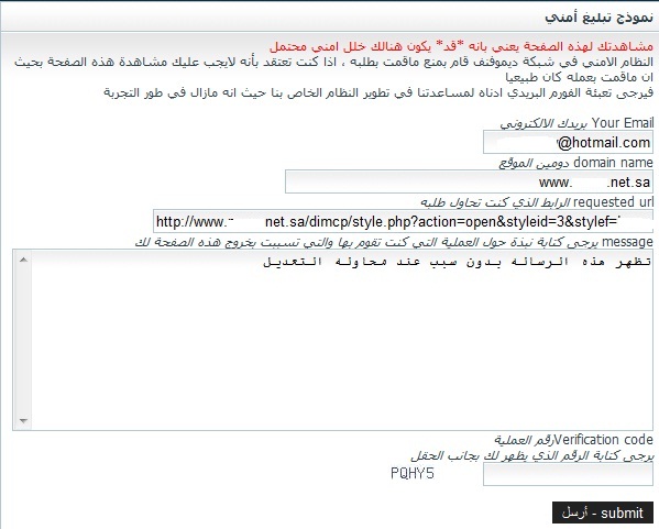 تظهر رسالة امنية مرفقة لكم في اسفل المشاكة