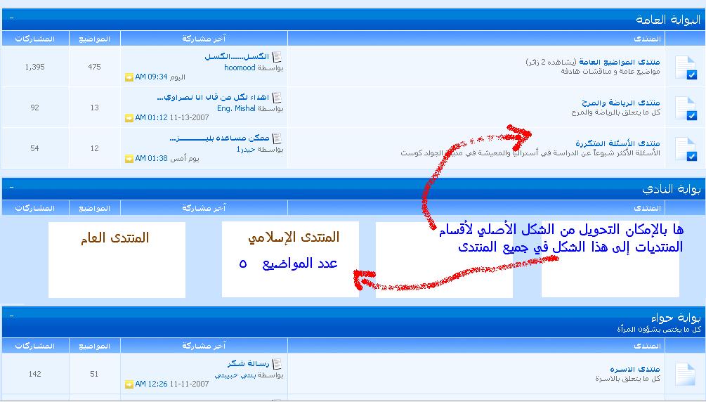 كيف يمكنني تغيير شكل أقسام المنتدى للنحو التالي