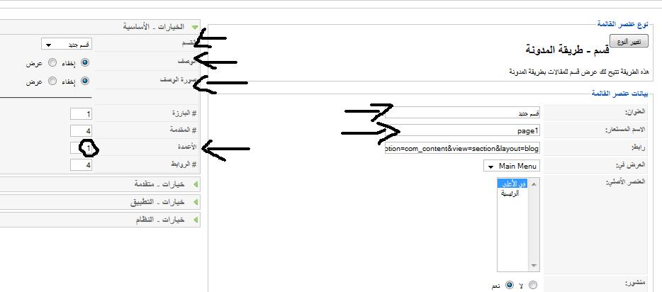 ثم عند تبويب قسم نختار قسم - طريقة المدونة