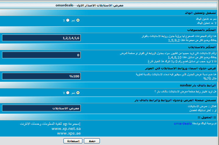 • يستخدم فى عرض استايلات منتداك بصفحة خارجية