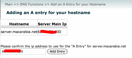 Main >> DNS Functions >> Add an A Entry for your Hostname