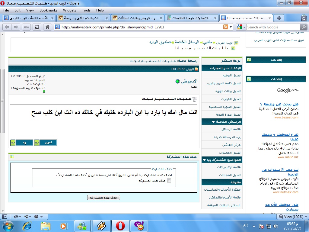 وكمان انت روحت قدمت شكوى فى محكمة نت .. والحمد لله بما ان ادارة محكمة نت تفهم فى القانون كويس قامت بحذف موضوعك والقاءة فى سلة المهملات والمحذوفات