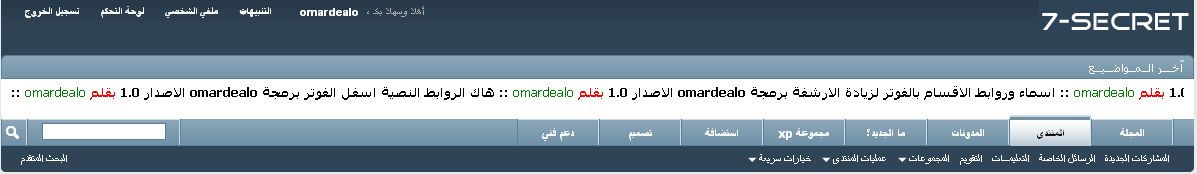 شريط اخر المواضيع تحت الهيدر برمجة omardealo الاصدار 1,0 omardealo قسم المنتديات 1 26-12-2009 09:36 AM