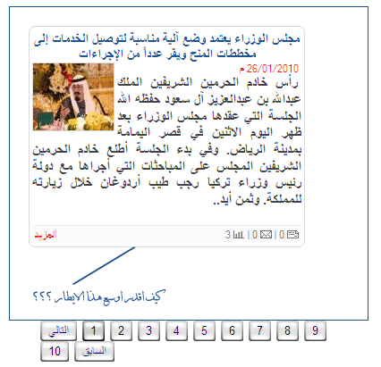 انا عندي الخبر المثبت المتحرك فيه الايطار مرره صغير ..ابغي اوسع الايطار كيف اقدر اوسعه ؟