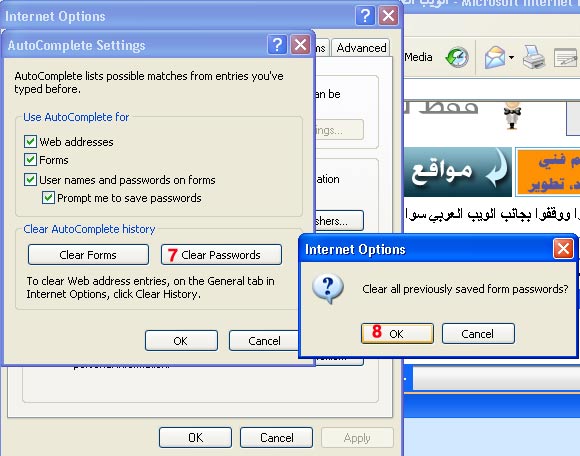 وسيتم حذف الكلمات التي تم كتابتها في محركات البحث او اسماء الدخول للمنتديات والخ