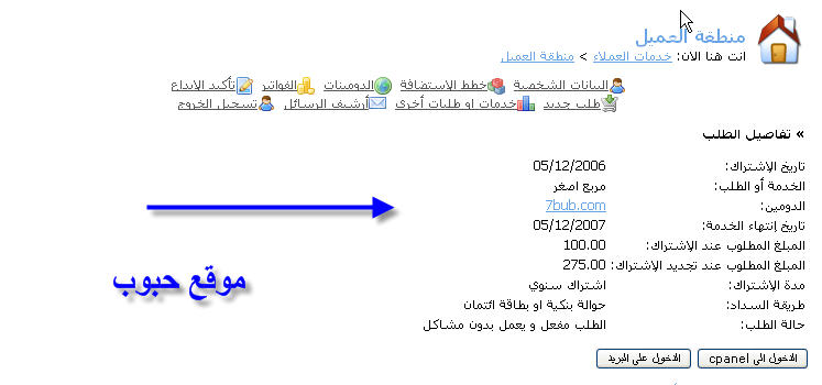 لاحظ المرفقات راح يستلم الشخص لوحة تحكم الدومين ولوحة السي بانل وايضا لوحة خدمة العملاء