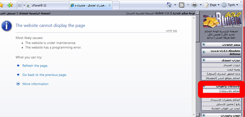 ودخلت على لوحة تحكم المنتدى. وكل الخيارات والاعدادات ظاهرة لي..بس واجهتني مشكلة لما اخترت (الستايلات والقوالب) سواء التحكم بالستايلات أو رقع قالب