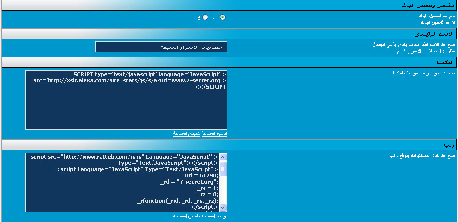 احصائيات منتداك بالفوتر رتب&اليكسا&بيج رانك برمجة omardealo الاصدار 1.0