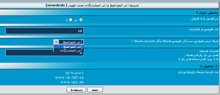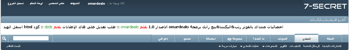 شريط اخر المواضيع تحت الهيدر برمجة omardealo الاصدار 1,0 omardealo قسم المنتديات 1 26-12-2009 09:36 AM