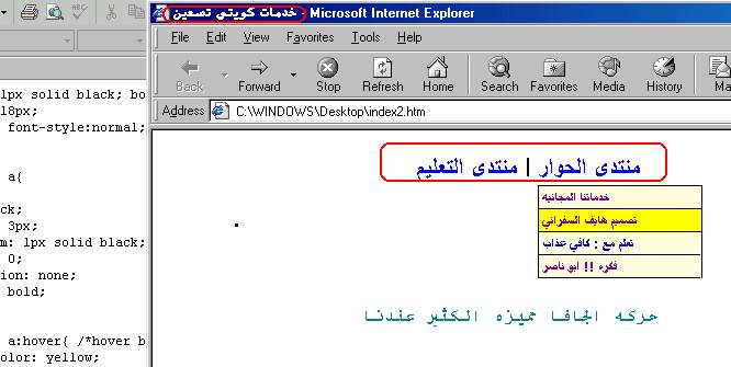 center]menu1[1]='<a href="http://www.xxxx.com">تصميم هايف السفراني</a>'[/center]