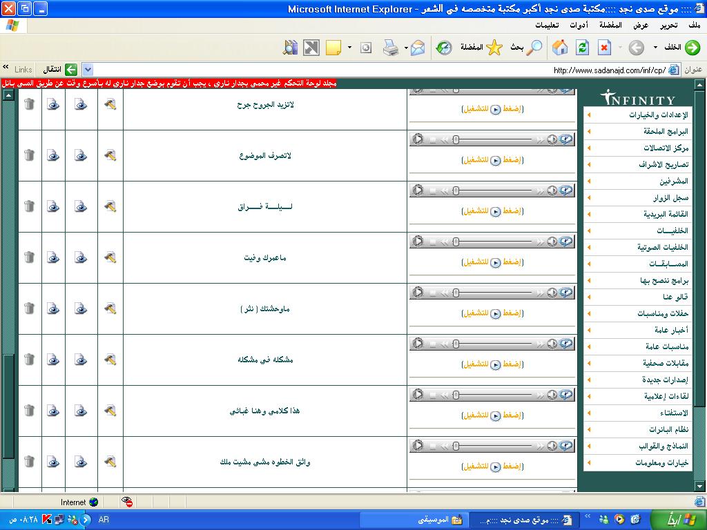أخواني من كثر قصائد الشعراء عندي بالموقع تعليق توقف وش الحل جالس أرفع ملفاتي الى أنفنتي وشيل الروابط بس تعبت من التعليق والتوقف كل المشكله من الاستماع المحطوط في أنفنتي ودي أشوف حل معه الصوره في المرفقات