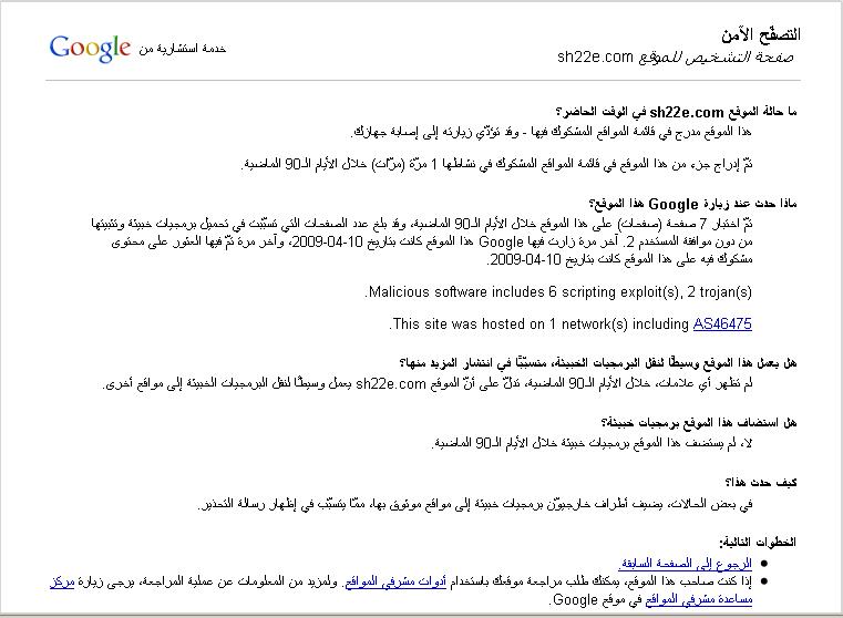 وبالنسبه لكلام الاخ الفاضل ليك حق الموقع مرفوض من جوجل بسبب كميه الفيروسات ال فيه ال اول ما اتفتح انتشر في الجهاز فا نصيحه بعدم زياره ال موقع خوفا علي الاعضاء من الضرر الناتج وياريت قبل العرض يعرضوه علي مختص للتصليح