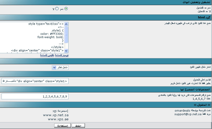 لوضع كود html اسفل الهيدر مع تحديد المجموعات داخل فريم او بدون برمجة omardealo omardealo قسم المنتديات 0 17-01-2009 11:12 AM