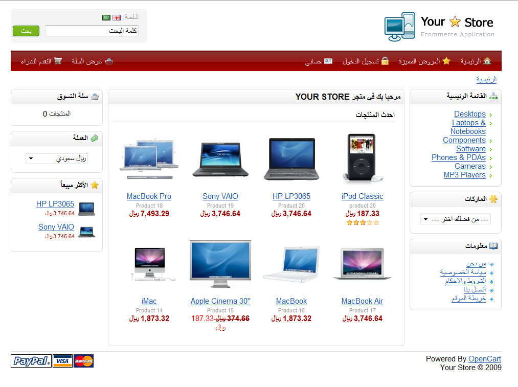 تم بحمد الله الانتهاء من تعريب واجهة سكربت سلة التسوق OpenCart ولكثرت الطلب علية سوف أضعة لكم واشرح طريقة تركيبة على عدة خطوات واليوم راح اشرح طريقة التركيب