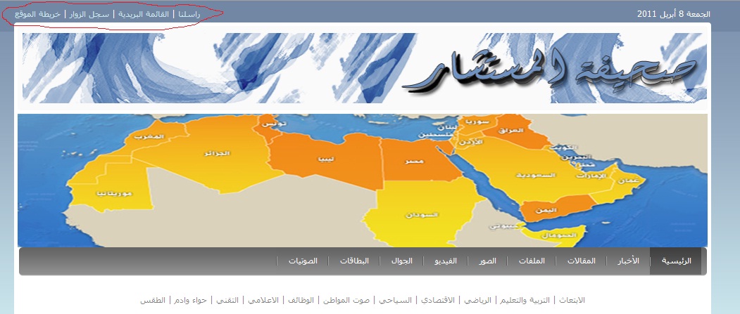 كيف اضيف كلام الي موجود فوق بالهيدر "راسلنا,القائمة البريدية,سجل الزوار,خريطة الموقع"