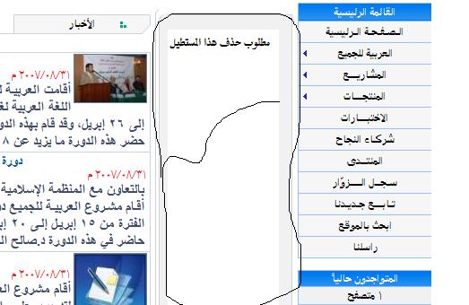 هذا العمود يأتي مع الستايل تلقائياً ولا تستطيع اخفاءه إلا إذا لا تريدها مطقاً قم بفتح نموذج الــ index.htm عن طريق الفرونت بيج وقم بتحديد الجدول ومن ثم قم بحذفه ولكن تذكر إن أي برنامج يندرج تحت هذا الجدول لن يعمل معك أخي الكريم .