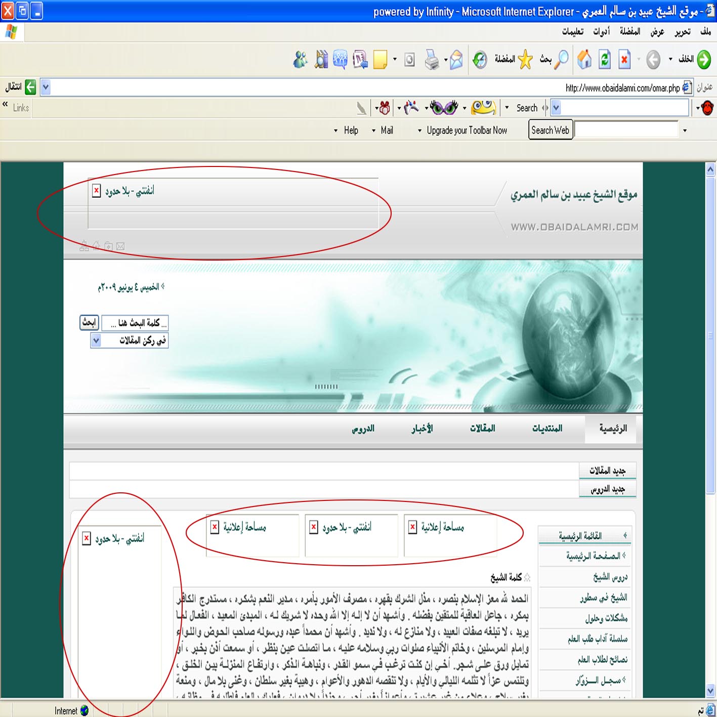 كيف ازيل كلمة مساحة اعلانية وانفنتي بلا حدود من جميع الصفحات ؟