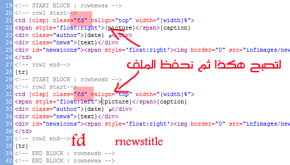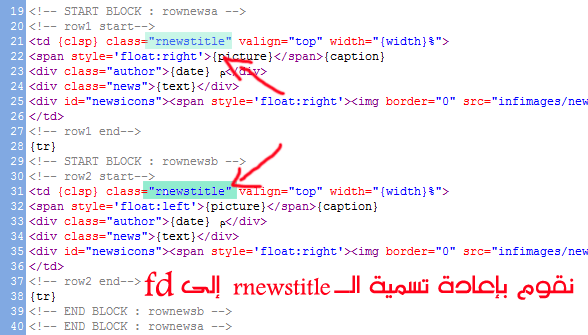 ما فعلناه اننا قمنا بتغيير class الخاص بالوصف من rnewstitle الى fd مثلا لكي نتمكن ان تغيير شكله من خصائص css