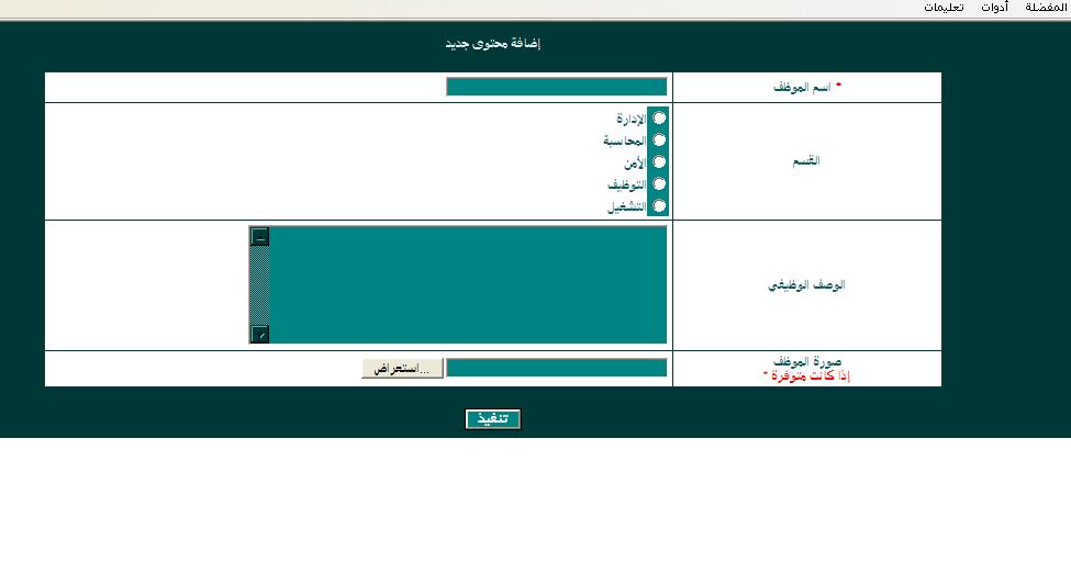 الفكرة كما ذكرت سابقا هي صفحة خاصة بالموظفين