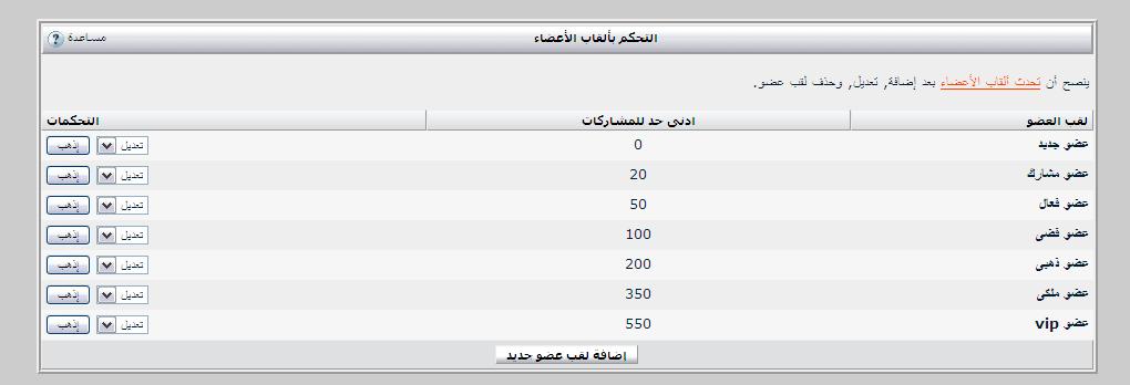 يعني لو كان عدد مشاركاته توصل 1000 يضل عضو جديد مع العلم انه سويت ألقاب الاعضاء وحددت عدد المشاركات ,,,,