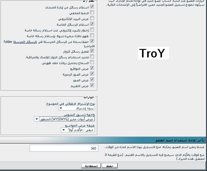 ثم خيارات تسجيل الاعضاء