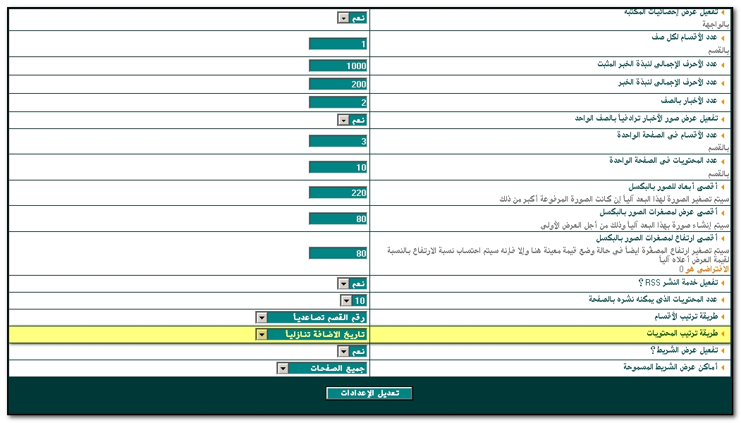 واخر الصفحة تلقى مكتوب ( طريقة ترتيب المحتويات ) حطها ( تاريخ الاضافة تنازلياً )