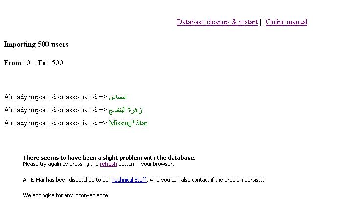 ارجوكم ساعدونى فى دمج قاعدتين باستخدام impex مشكلة خطأ فى داتا بيز و النقل يتم