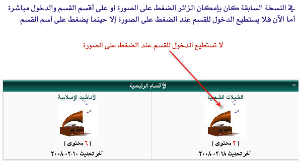 لا يمكن للزائر الدخول للقسم المطلوب عند الضغط على الصورة إلا في حالة الضغط على اسم القسم وهذه مشكلة حقيقة