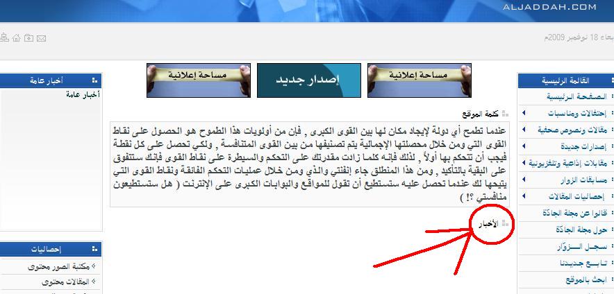 2- كلمة الاخبار تجدها جلية بنموذج ccontent يمكنك استعراض النموذج من خلال