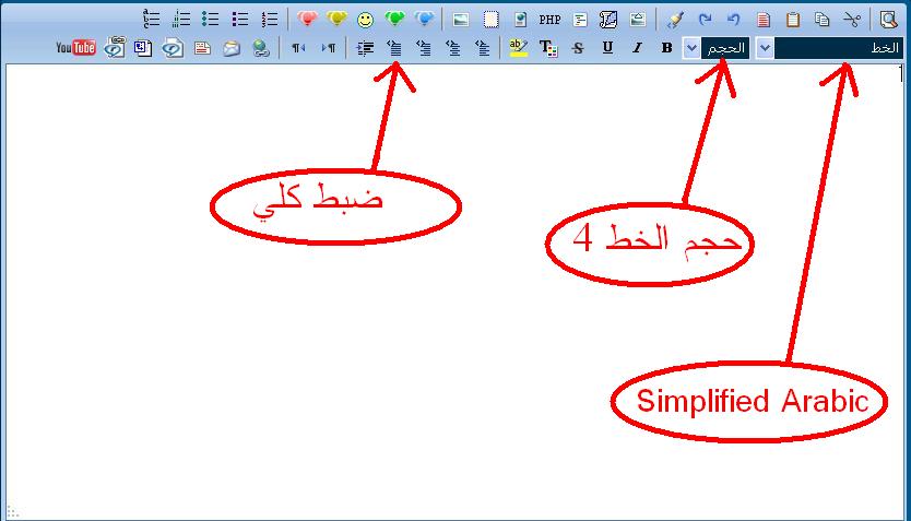 التنسيق الأول : إختيار نوع "الخط" يجب أن يكون "Simplified Arabic" وانتبه لذلك .