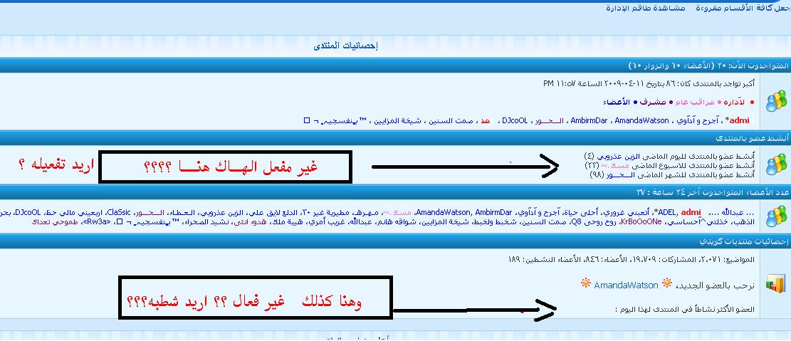 انا عندي هاك انشط عضو اليوم الماضي . والانشط للأسبوع الماضي. وانشط عضو خلال الشهر؟ غير فعال