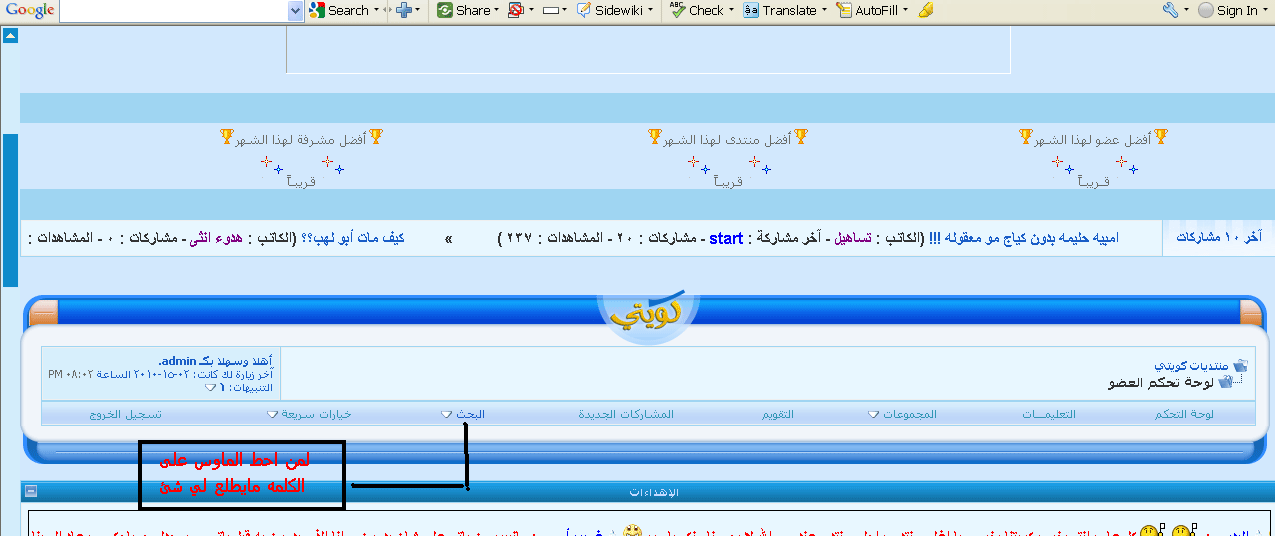 والاهم انه اذا اخترت على زر في المنتدى مثل المجموعات او البحث مايطلع لي الخيارات الموجوده