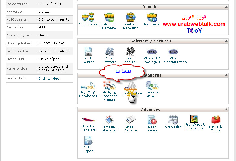 ثانيا : توجه كما بالصوره الى اختيار phpmyadmin