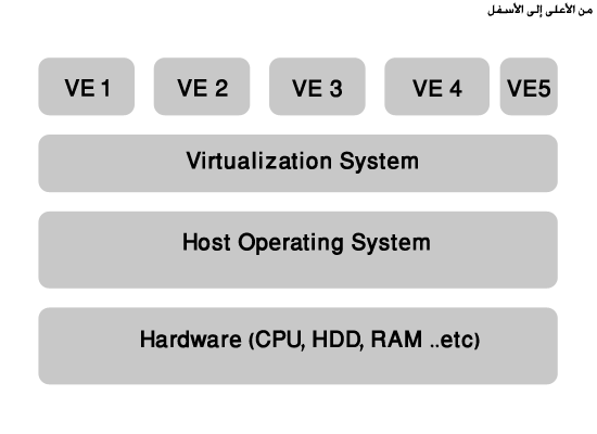 ملاحظة: المسمى الصحيح للأنظمة الضيف التي تعمل على SW Layer هو VE اختصاراً ل Virtual Environment.