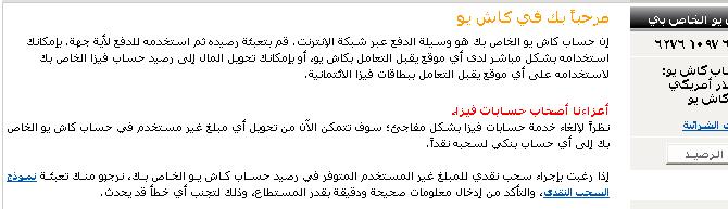 الا الان الفيزا ما اشتغلت ولم يصل أي رساله او اي خبـر لعملاء الكاش يو .