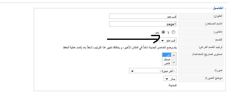 نكرر نفس العملية ولكن بعد كلمة منشوف نختر القسم اللي سويناه نم قبل وهو قسم جديد