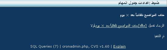 عمل الهاك:يقم بحذف جميع المواضيع التي بدون ردود بصورة تلقائية بعد مرور × يوم/أيام على مرورها عن طريق المهام المجدوله ، يعمل الهاك افتراضيا كل عشرة أيام ويمكنك تغير هذه المدة كما تريد ،